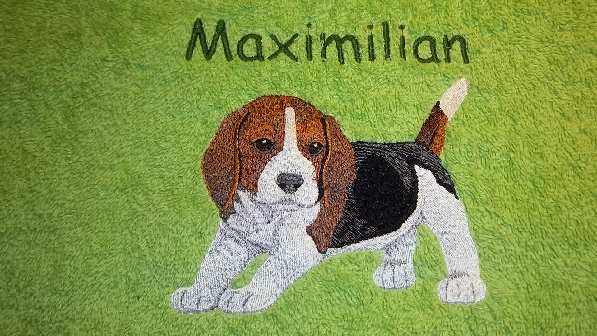 Mobile Preview: Handtuch mit einem Beagle bestickt