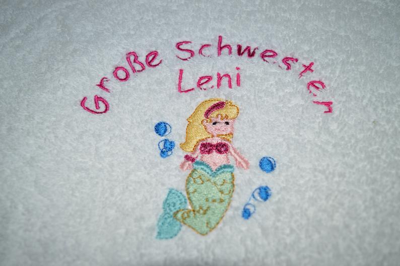 Handtuch mit einer kleinen Meerjungfrau bestickt!