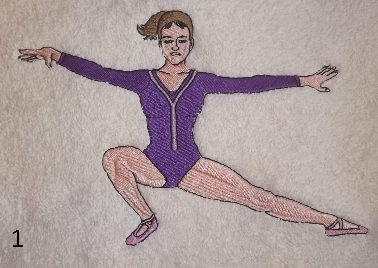 Handtuch mit sportlicher Frau auf einem Hometrainer bestickt.