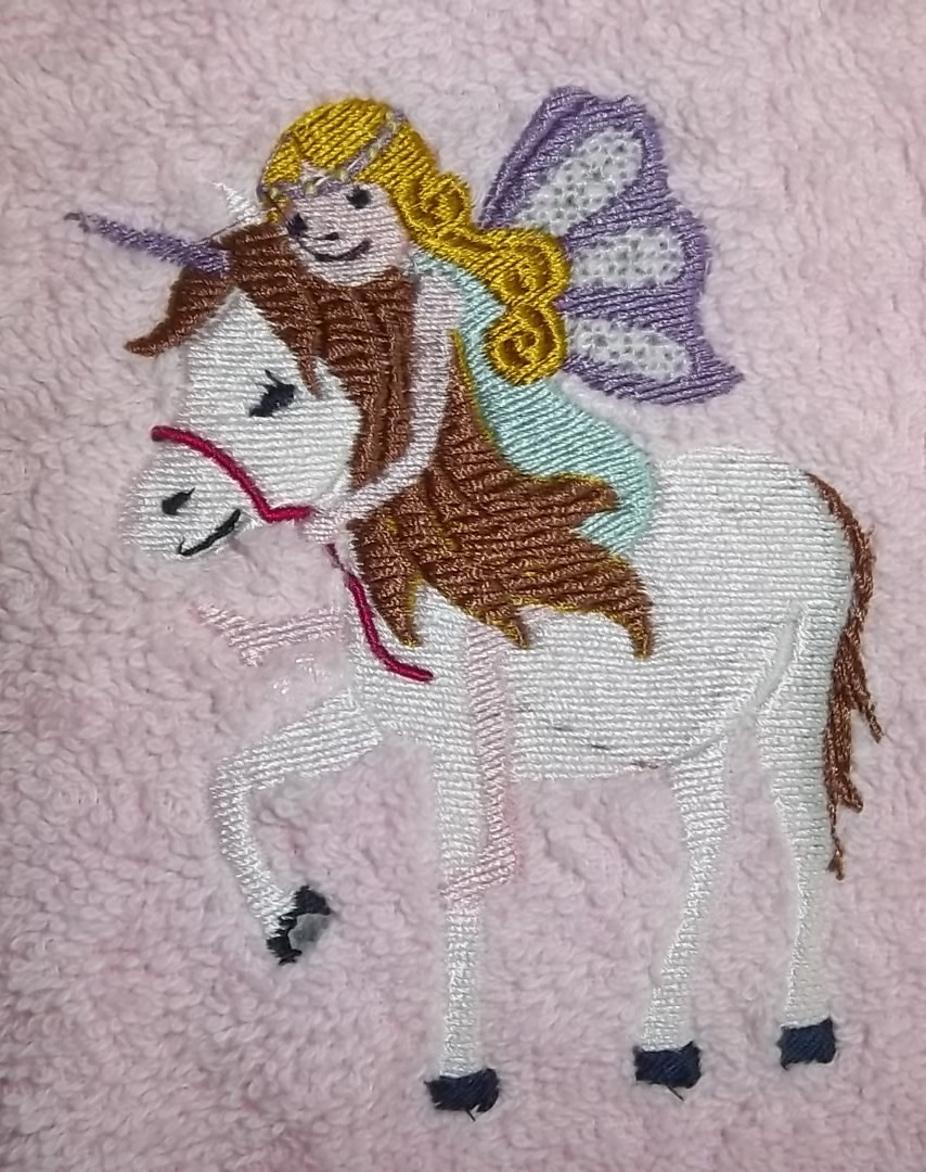 Handtuch mit einer Fee auf einem schönen Pferd bestickt!