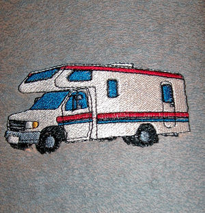 Handtuch mit einem Wohnmobil bestickt.