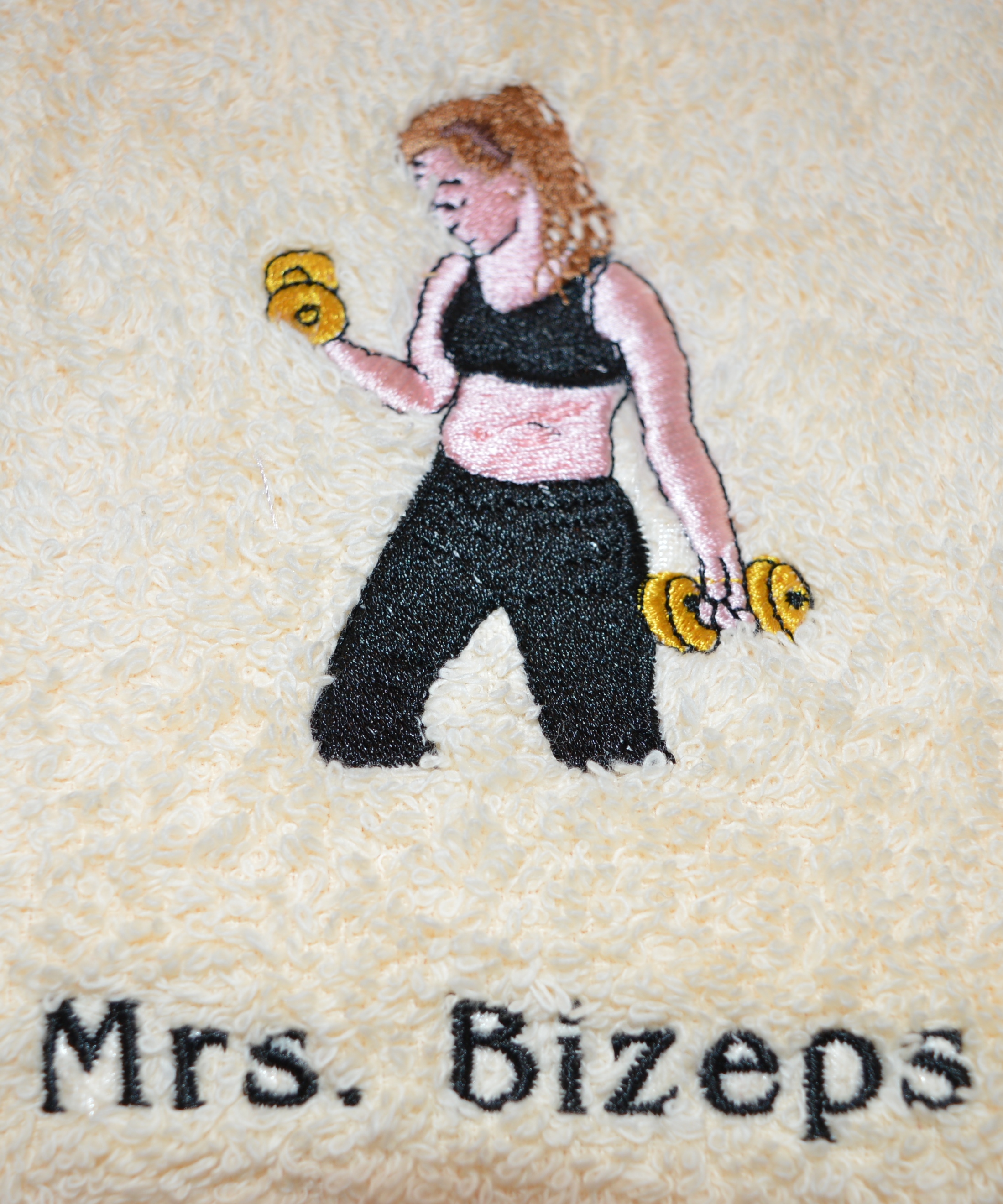 Handtuch mit einem Motiv worüber sich sportliche Frauen bestimmt freuen.